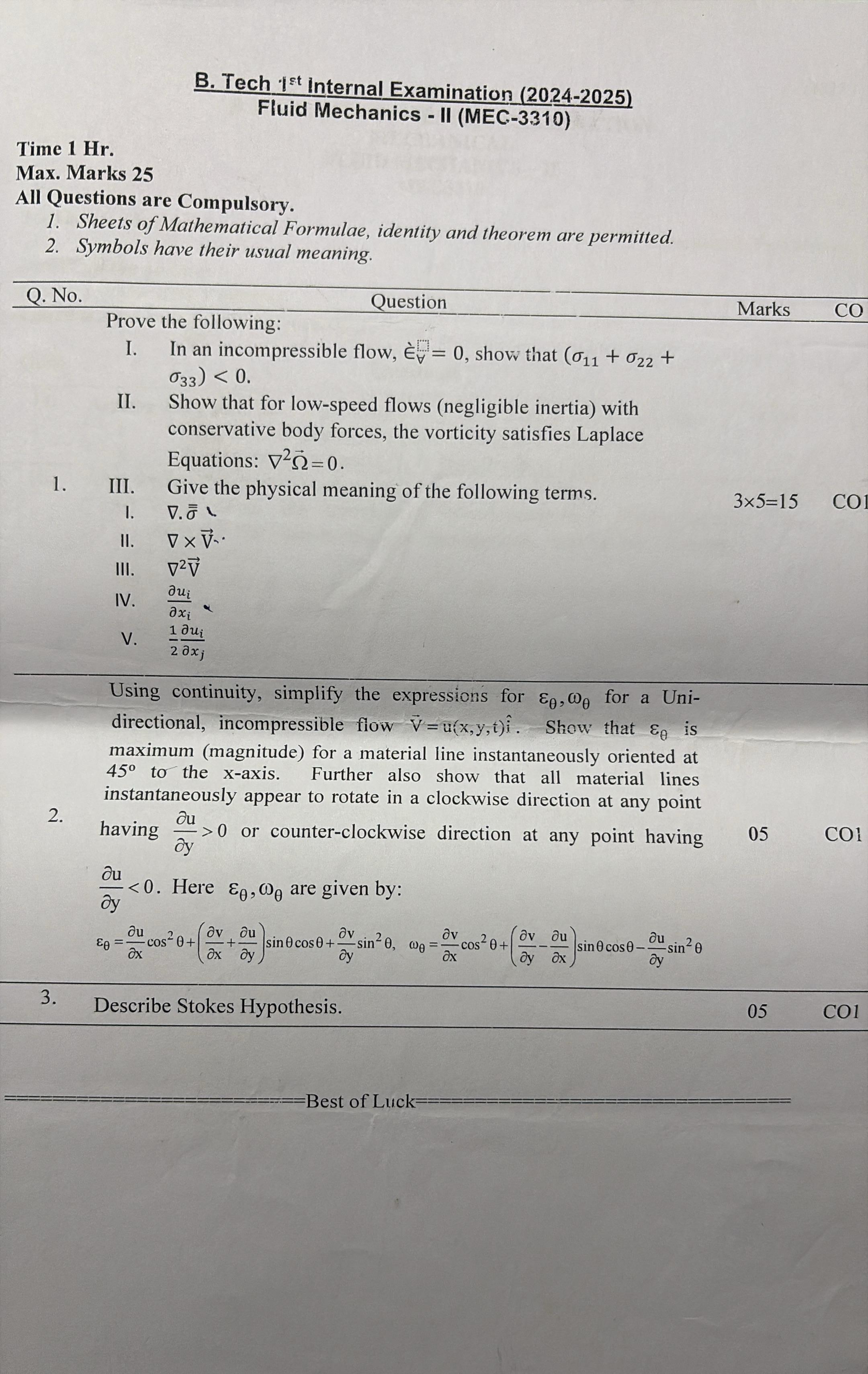 Fluid Mechanics II — Unit 1